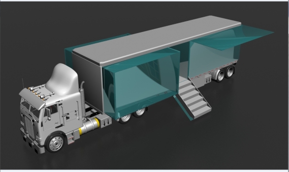 流动培训车为厢式结构,车厢为密封厢式结构;主要由培训车和培训模块系统两大部分组成,包括封闭式扩容培训教室、互动教学设备、户外LED屏(选装)等。流动培训车设计安装了培训所需的灯光、显示器、摄像头、音响等设备,通过连接各培训设备及控制台,达到培训教学和宣传的功能要求。